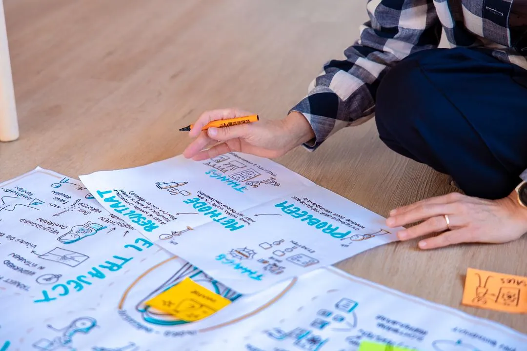 Ik faciliteer en begeleid gesprekken over marketing- en communicatievraagstukken, denk mee en maak live zichtbaar wat er wordt gezegd. Soms in tekeningen, soms op andere visuele manieren.